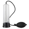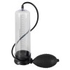 Transparente Penispumpe mit schwarzer Manschette (2 cm, flexibel) und praktischer Pumpbirne. Die Skala ermöglicht es Ihnen, die erzielte Vergrößerung visuell zu verfolgen. Mit Sicherheitsventil zur Druckkontrolle.