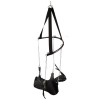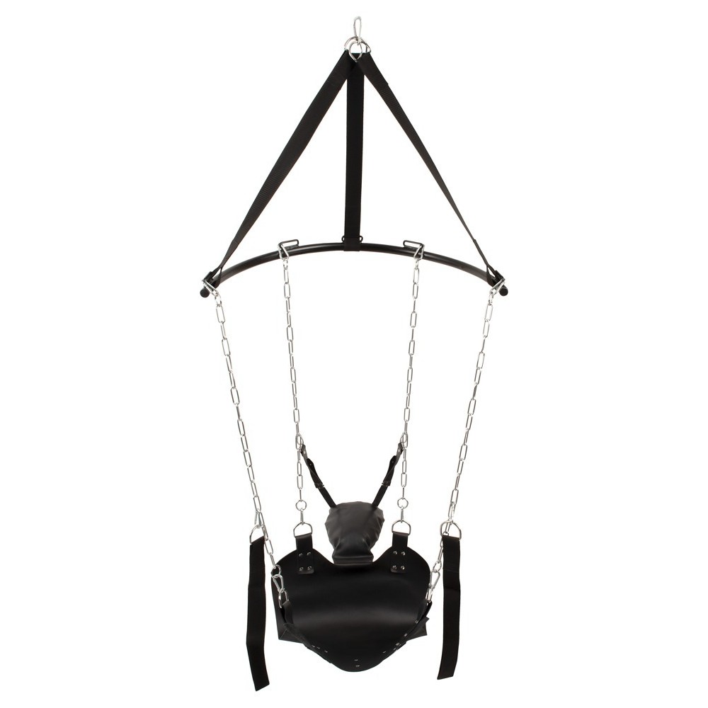 Der Sitz (maximale Länge 75 cm und maximale Breite 49 cm) und das weiche Polster (32 cm x 24 cm) sind aus dickem Leder gefertigt. Der Winkel des Polsters kann ebenfalls für mehr Komfort angepasst werden. Die beiden Hand- oder Fußschlaufen mit einem Durchmesser von 25 cm können einzeln mit Druckhaken an den robusten Ketten befestigt werden und gewährleisten so einen sicheren Sitz.