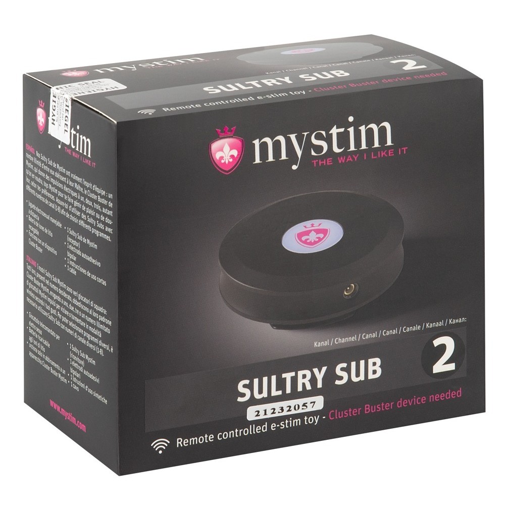 Der wiederaufladbare Sultry Sub ist ein Elektrostimulationsempfänger mit Fernbedienung. Eine unbegrenzte Anzahl von Sultry Subs kann an das Elektrostimulationsgerät Cluster Buster angeschlossen werden. Diese senden elektrische Impulse an ein, zwei oder drei Mystim-Spielzeuge oder sogar an eine unbegrenzte Anzahl von Geräten.