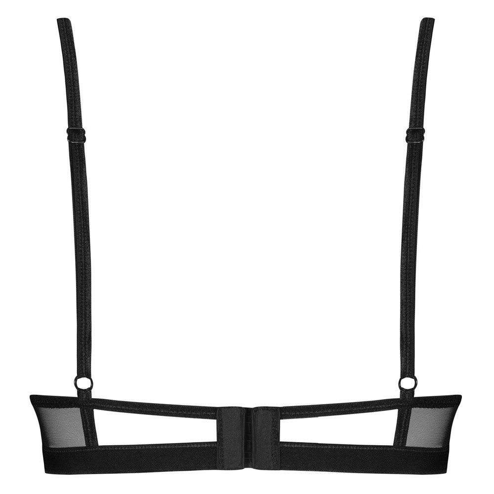 Der schwarze Bügel-BH Donarella von Obsessive ist aus zartem, aber elastischem besticktem Tüll gefertigt. Die weichen, elastischen Cups schmiegen sich bequem an die Brüste an. Zwischen den Cups befindet sich ein kleines dekoratives Element, das ein echter Blickfang ist. Der Verschluss ist hinten schneller zu schließen und die Träger können individuell angepasst werden.