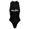 Eng anliegender Body von Noir mit Schlangenhaut-Effekt in matt-glänzender Ausführung, der sich wie eine zweite Haut anpasst. Weich und elastisch, bietet er außergewöhnlichen Tragekomfort. Der hochgeschnittene Beinausschnitt betont Beine und Gesäß auf sinnliche Weise. Der 3-Wege-Reißverschluss aus Metall ist sowohl praktisch als auch provokativ: Er beginnt am kleinen, hochgeschlossenen Kragen, verläuft über den Schritt und endet am oberen Gesäßrand, was verschiedene Tragevarianten ermöglicht.