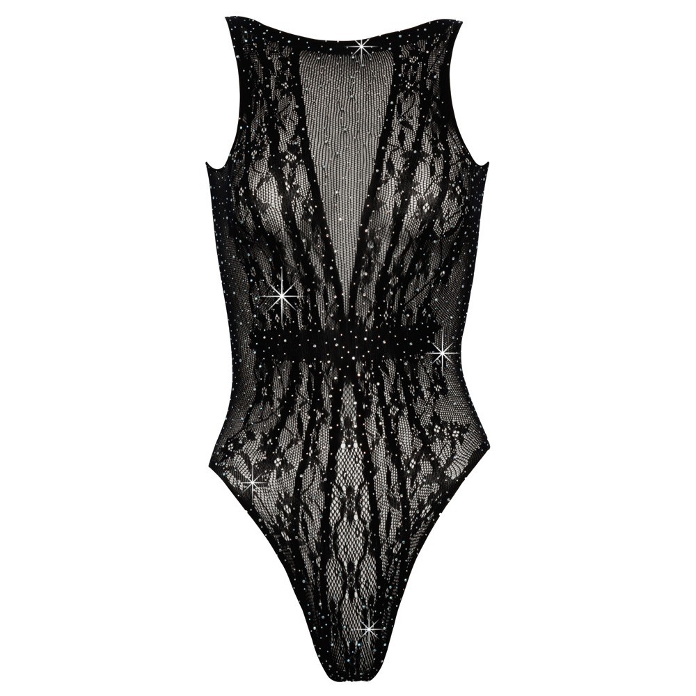 Body von Cottelli FANTASY aus feinem, weichem, elastischem und halbtransparentem Material, verziert mit Strasssteinen in verschiedenen Größen. Auf der Vorderseite zeigt sich ein Effekt aus ineinander verschlungenen Mustern, während auf der Rückseite ein eleganter Ausschnitt im oberen Bereich hervorsticht. Ohne Nähte oder hervorstehende Säume ist er flexibel und bequem und garantiert eine hervorragende Passform.