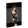 Knielanges Kleid von Noir mit figurbetontem Schnitt. Es kombiniert ein Oberteil aus weicher, elastischer Spitze mit einem Rock aus elegantem, geschmeidigem und raffiniertem Power-Wetlook. Mit langen Ärmeln und einem verführerischen Ausschnitt. Mit einem kleinen Schlitz am Rücken für mehr Bewegungsfreiheit.