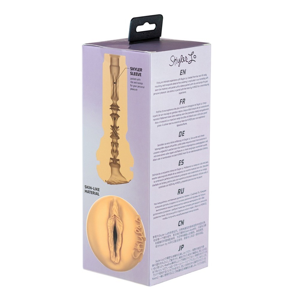 Der Masturbator Skyler Lo von Kiiroo verfügt über eine Öffnung, die der Originalvagina des Erotikstars Skyler Lo nachempfunden ist und neben den Schamlippen mit ihrem Autogramm versehen ist. Das Innere mit seiner extrem abwechslungsreichen Textur reproduziert originalgetreu das Gefühl einer engen Vagina und sorgt für eine intensive Massage während der Masturbation.