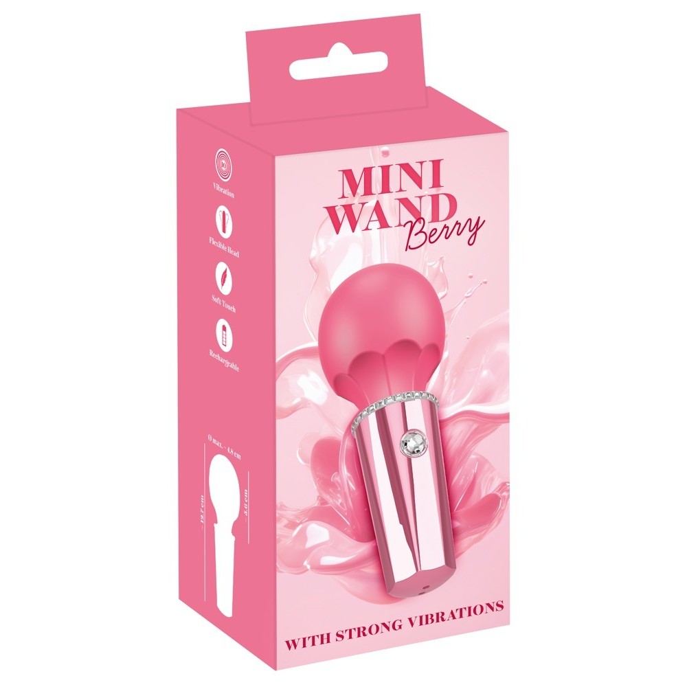 Petit et compact, le mini vibromasseur Mini Wand Berry de You2Toys se décline dans une couleur fruitée et fraîche rappelant une glace et arbore un look métallique élégant avec une pierre brillante en guise de bouton de commande. Avec sa tête de massage souple et soyeuse, il convient aussi bien aux massages prolongés qu'à une stimulation précise.