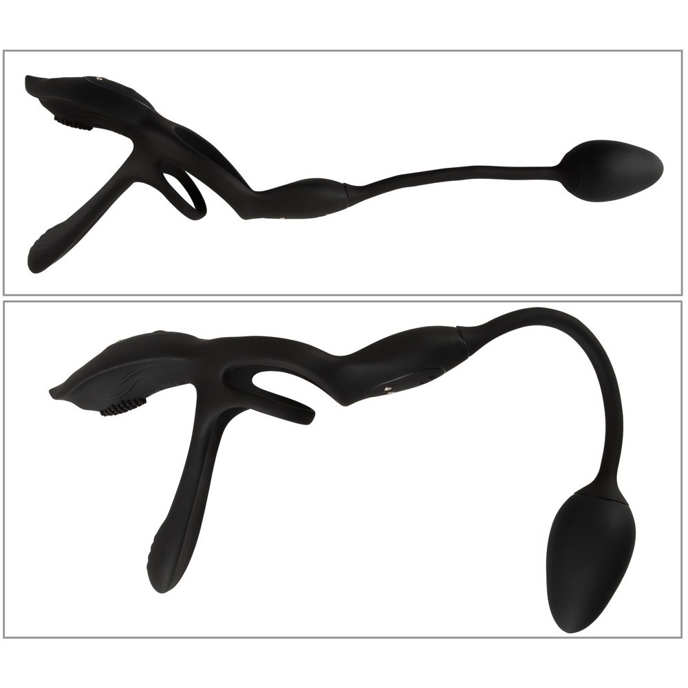 Der Penis- und Hodenring positioniert den flachen Paarvibrator auf dem oberen Teil des Penis, wodurch die Partnerin stimuliert wird und der Benutzer ein angenehmes Engegefühl verspürt. Der Penisring hilft dank der durchblutungsfördernden Wirkung, die Erektion länger aufrechtzuerhalten, und der kugelförmige Ring sorgt für einen festen Sitz. Der sanft polierte Klitorisvibrator verwöhnt direkt die empfindlichste Stelle, während der Vibrationsplug vom Benutzer anal eingeführt oder zur zusätzlichen analen Stimulation des Partners verwendet werden kann.