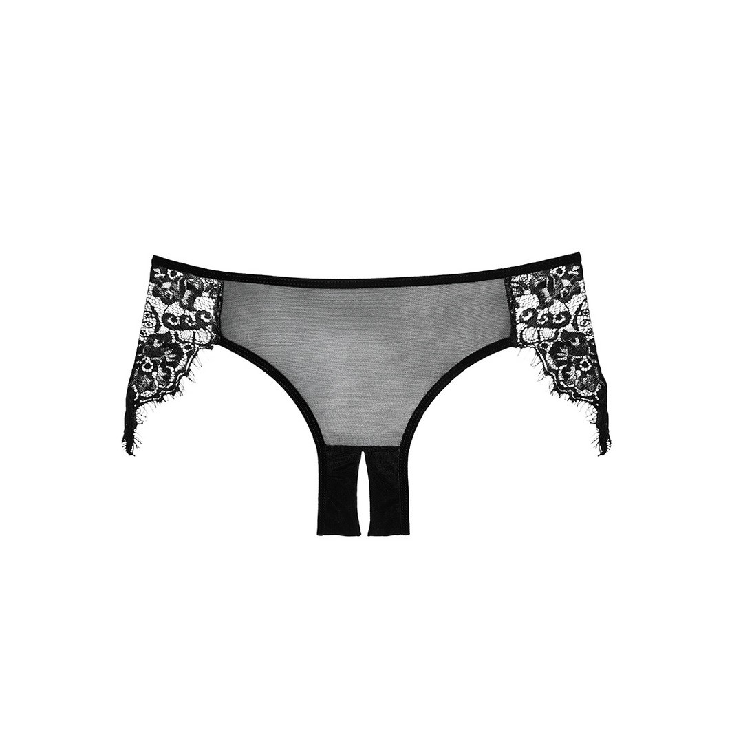Culotte de rêve en maille sans entrejambe avec de délicieux baisers de dentelle en cils sur les hanches. Sans couture et très élastique.