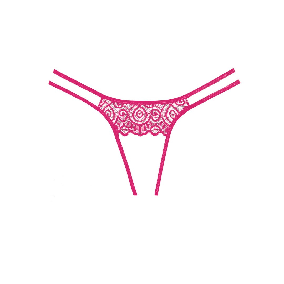 Votre cœur bat la chamade dans cette délicate culotte en dentelle galonnée, qui offre plus qu'une pointe sur le devant, tout en flirtant sans vergogne dans le dos ultra ouvert.