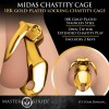 Cage de chasteté en acier inoxydable plaqué or 18 carats, avec extrémité ouverte et deux anneaux de réglage.