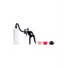 Pompe d'agrandissement pour pénis avec tube transparent, 3 ouvertures et valve de libération rapide.