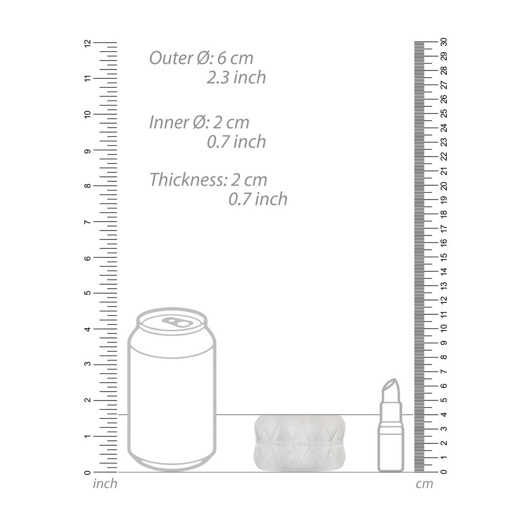 The measurements are: inner diameter of 2 cm, outer diameter of 6.2 cm and total height of 4 cm. Versatile, it can also be used as a penetration limiter, ideal for those who feel discomfort during sexual intercourse — providing greater control and pleasure at the same time. The penetrating partner continues to feel the experience of full insertion, without the need for extra effort.