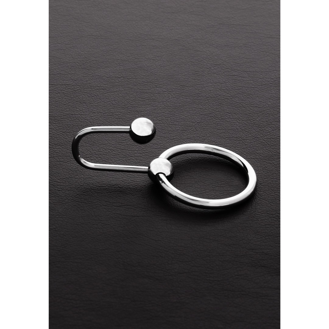 This sperm stopper is designed with a hinged hook attached on a glans ring.It is supposed to be worn tightly around the head of the penis, and the sphere to be inserted in the urethra. This will give the penis a firm head, just like during an erection.The inner diameter of the ring is 3cm.It is easy to clean.Are you ready for some strong pleasure? Enjoy these toys from 'Shots Steel'/