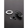 L'anneau inclus est réglable grâce à son mécanisme de fermeture de type menottes, et la cage à pointes se fixe à cet anneau en acier à l'aide d'une seule goupille, conçue pour maintenir la fermeture incluse en place.