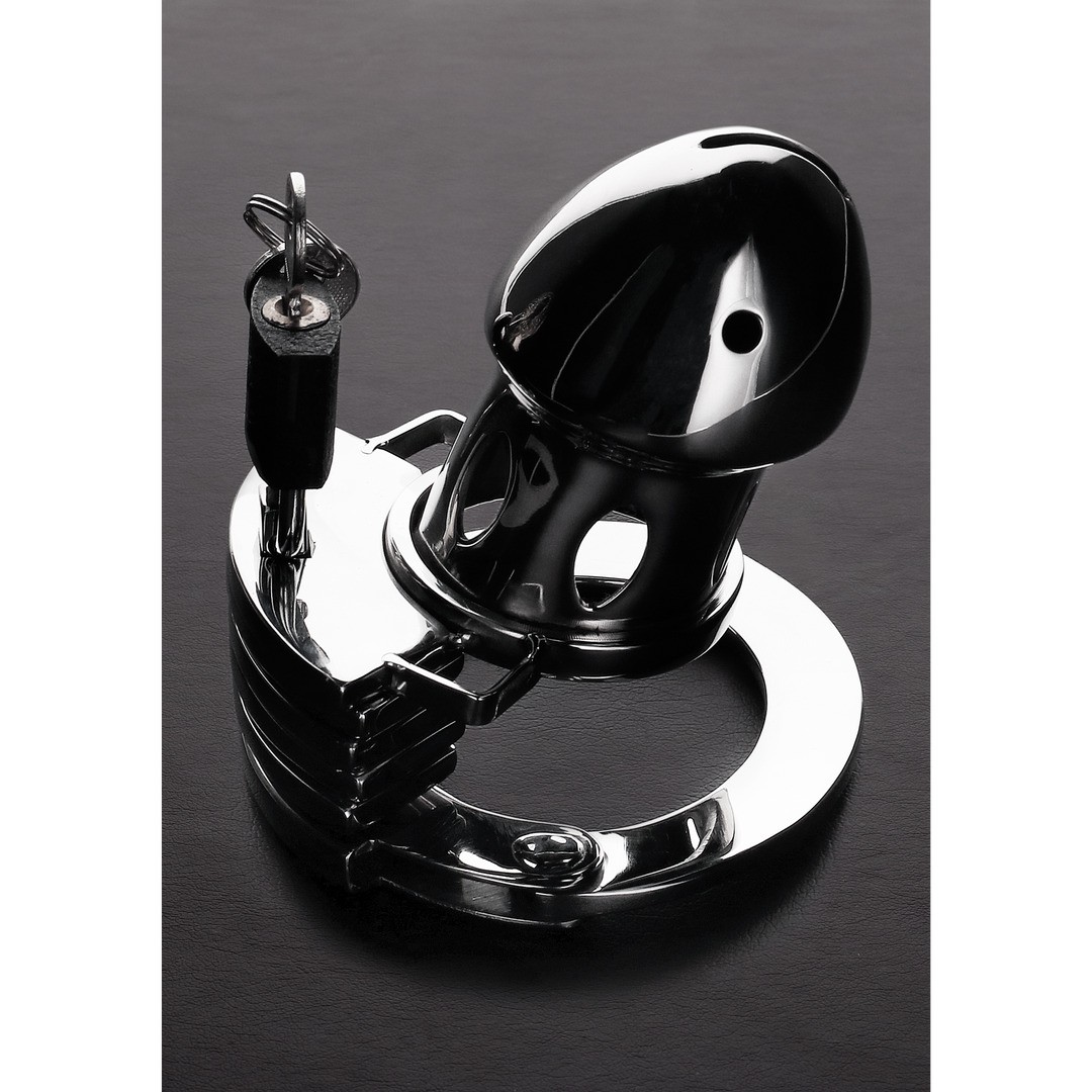 Pendant ce temps, le pénis flasque sera emprisonné dans la petite cage métallique, sans aucune chance de s'échapper! Trois entretoises permettent d'ajuster la cage à la longueur souhaitée.