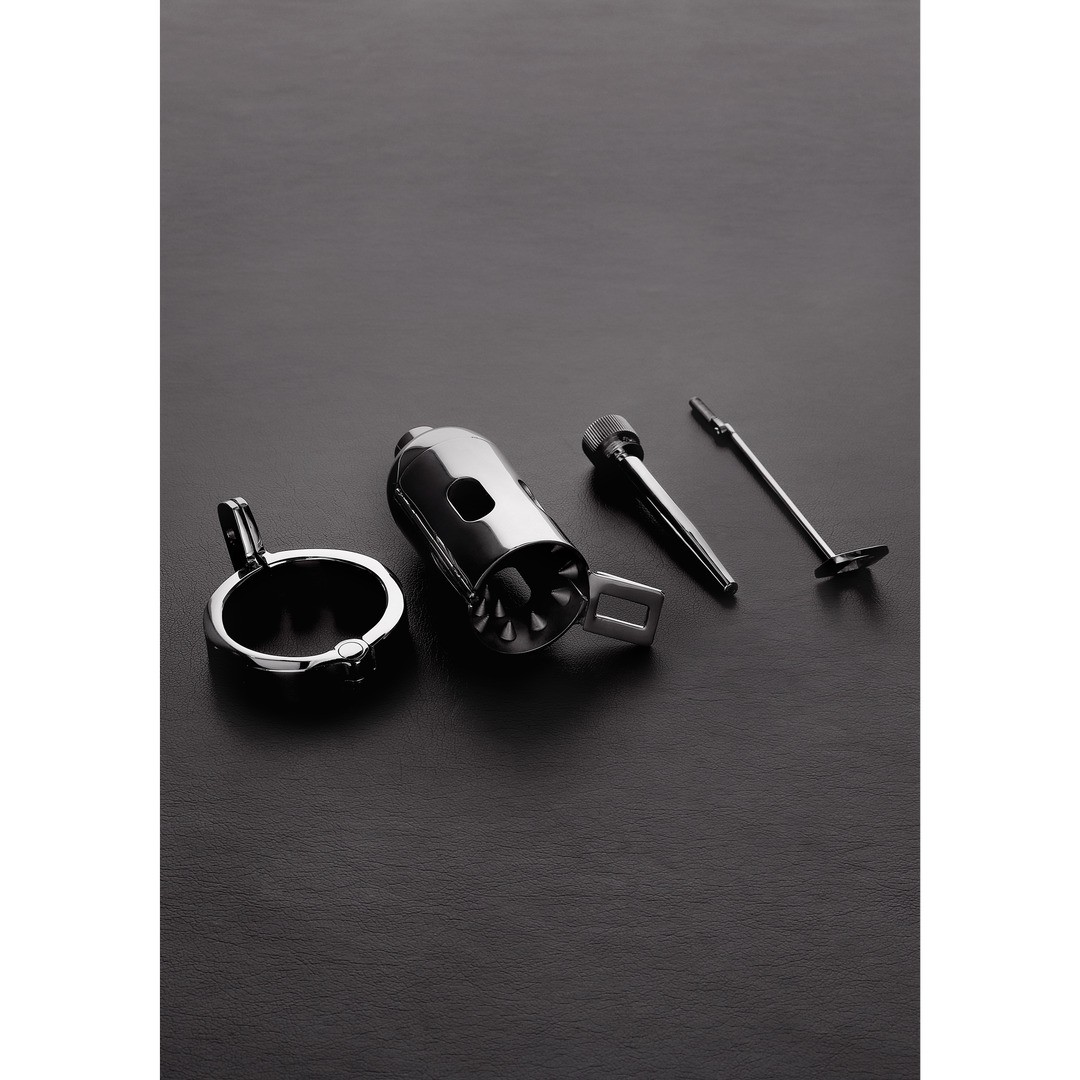 Elle comprend également une sonde d'urètre amovible de 7 mm avec un orifice pour uriner. La sonde est verrouillable et ne peut être retirée sans la clé.