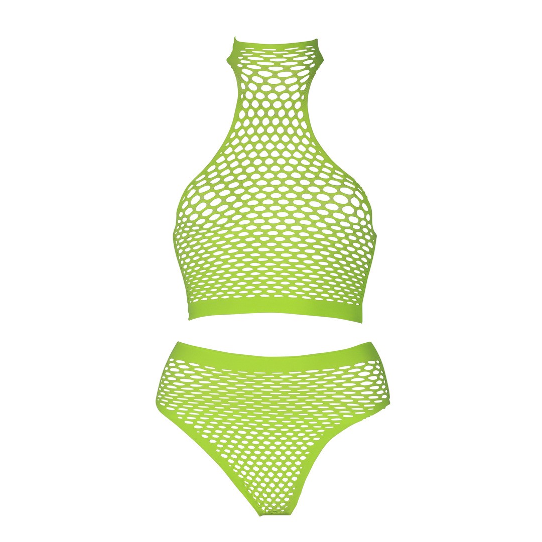 Our Neon lingerie is the perfect addition to your collection. Made with comfortable, easytofit, stretchy materials they are designed to fit your body perfectly. Whether you're using them as party wear or as lingerie, this eye-catching piece will make sure you stand out! Unleash your inner goddess with this stunning UV activated lingerie. This piece consist of a turtle neck crop top and high waist panty. An amazing party-wear that gives you that wow-factor and makes you stand out. The UV activated materials adds a touch of mystery and allure. Easy to fit because of the stretchy materials will make you light up the night. Available in neon pink and neon green. Sizes run from XS/ XL to XL/XXXXL