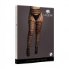 Suspender pantyhose made of soft, stretchy fishnet with striped pattern. Wear under clothing for a timely reveal, or to accessorise a lingerie set to amp up bedtime games. Thong not included.