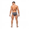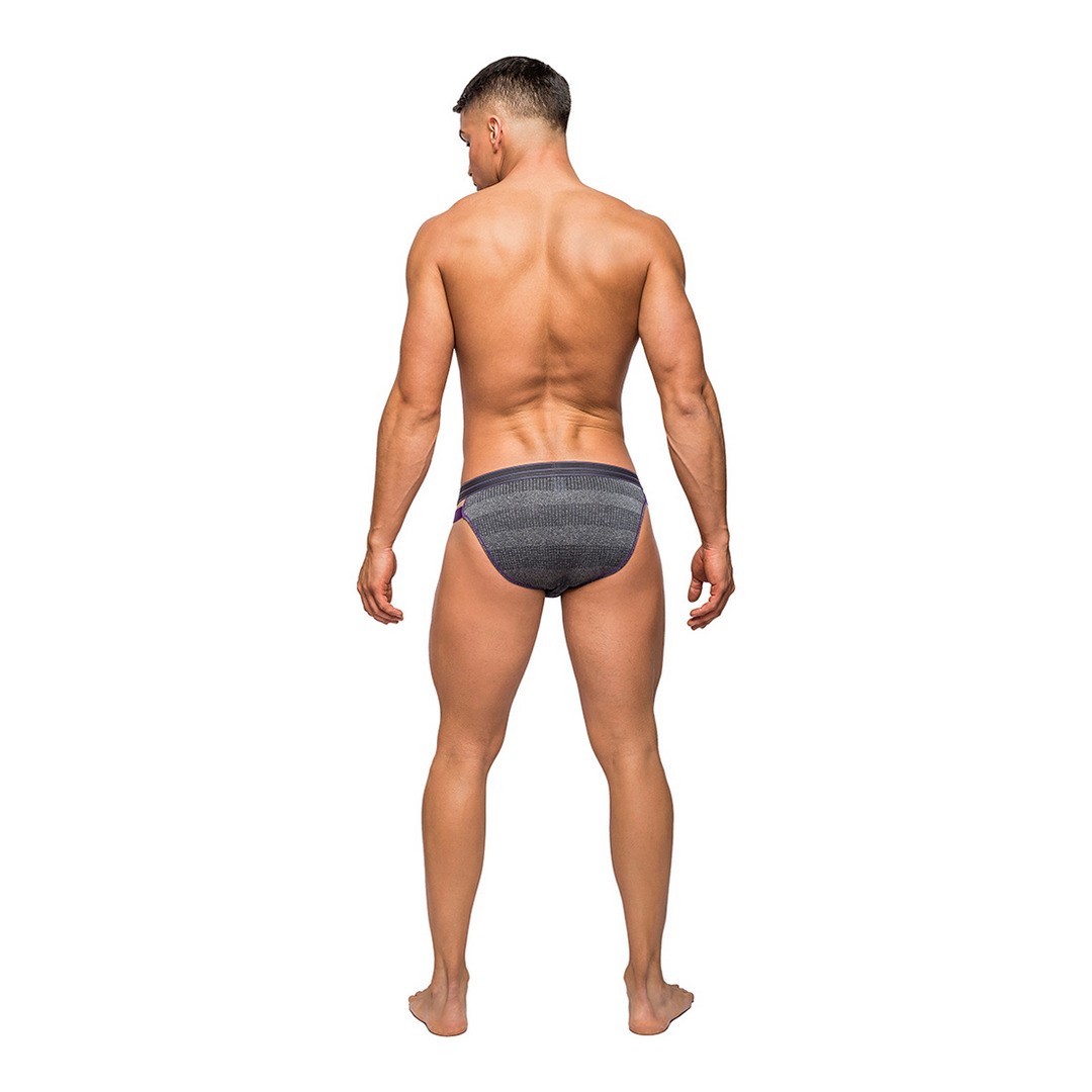 From the Heather Haze collection by Male Power, this style includes: A cutout bikini with a comfort pouch and plush bright elastic bands on the hips to create a cutout window effect featuring bright decorative stitching, a sporty plush elastic branded waistband, and full rear coverage.