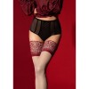 Ces bas à jarretelles auto-fixants sont composés d'une dentelle rouge sensuelle, de jambes transparentes, de silicone sur le haut et d'une pointe renforcée invisible pour une touche d'élégance.