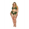 Ensemble 3 pièces en dentelle extensible avec détails métalliques, comprenant un soutien-gorge, un porte-jarretelles et un string sensuel.