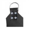 Balançoire rectangulaire en cuir noir, confortable et résistante, avec 4 points de fixation métalliques.