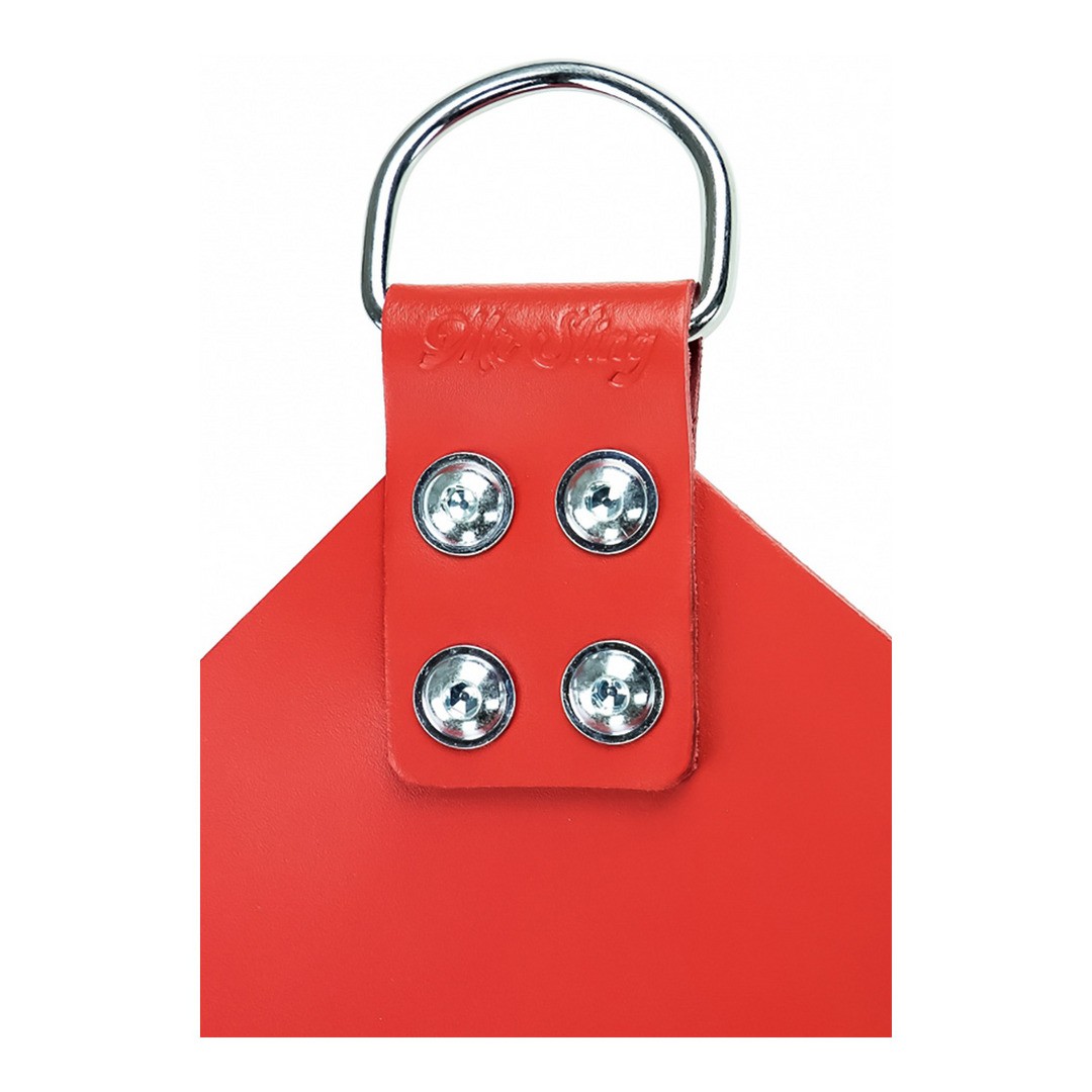 Cette balançoire en cuir rouge dispose de 4 points d'ancrage et d'un dossier moulé à la forme du corps, offrant un plus grand confort