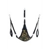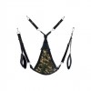 Ce balançoire en tissu camouflé a été conçu avec une forme triangulaire et un tissu camouflage. Il s'ajuste à l'aide de 3 ou 4 points de fixation. Il comprend les accessoires suivants: 4 crochets avec mousquetons métalliques, des repose-pieds rembourrés (11 cm de large) et un coussin triangulaire noir (24 x 20 cm).