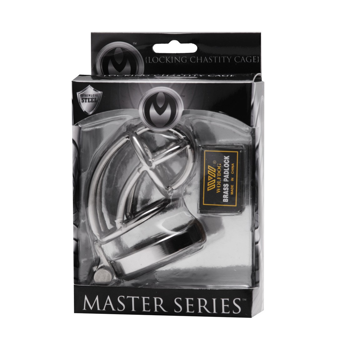 Cette cage inhibitrice d'érection est fabriquée en acier inoxydable durable et dispose d'une cage raccourcie avec une pièce de base pour le verrouillage. Il suffit de placer le pénis dans la cage et de fixer l'anneau de base à l'aide du mécanisme simple à goupilles.