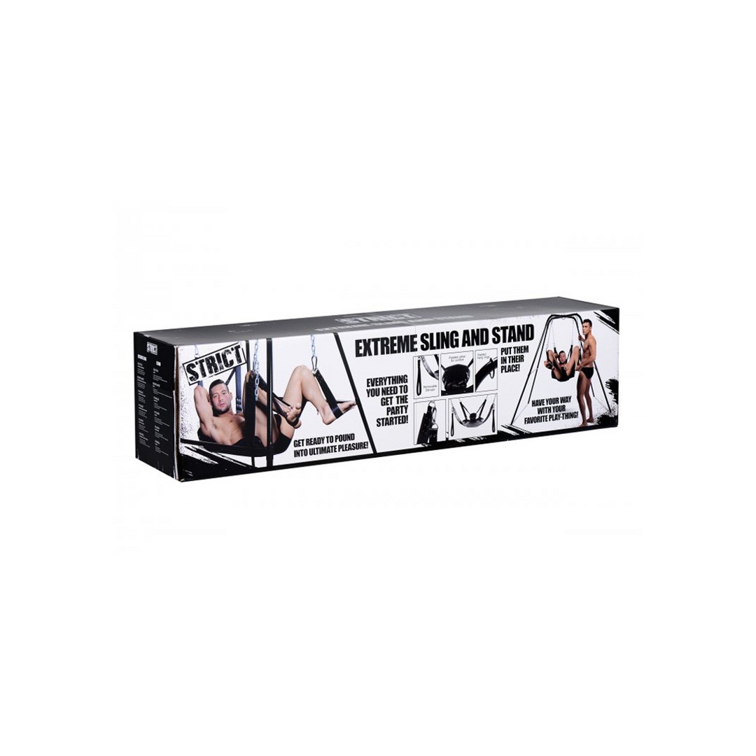 La structure est dotée d'anneaux intégrés pour fixer les chaînes en toute sécurité. La housse doublée de peau synthétique offre un accès total au corps de votre partenaire, le maintenant suspendu en l'air, ouvert et à votre disposition.