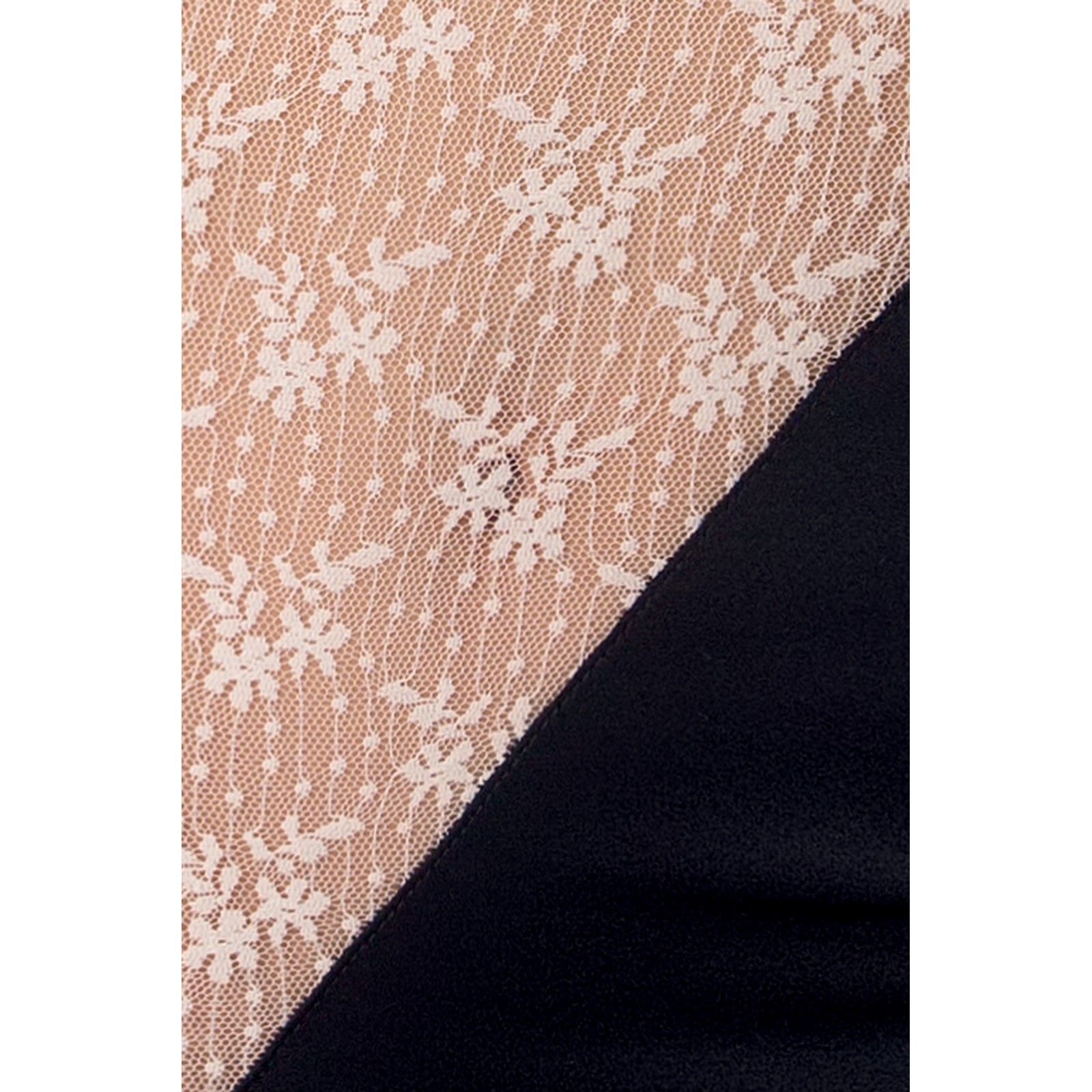 Fabriqué en microfibre noire douce et en dentelle beige exquise, ce vêtement met en valeur les courbes des femmes de manière discrète et séduisante. Le design original sur le devant, avec un plissé beige et une découpe stratégique sur la cuisse, souligne la sensualité sans compromettre le confort.