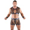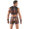 Les clous et les anneaux de couleur argentée ajoutent des accents frappants à l'ensemble. Le haut et le pantalon ont des découpes révélatrices sur le devant. Le pantalon est également fendu dans le dos. Les deux menottes fournies peuvent être attachées au haut ou au pantalon rapidement et facilement, grâce à leurs chaînes à mousquetons.
