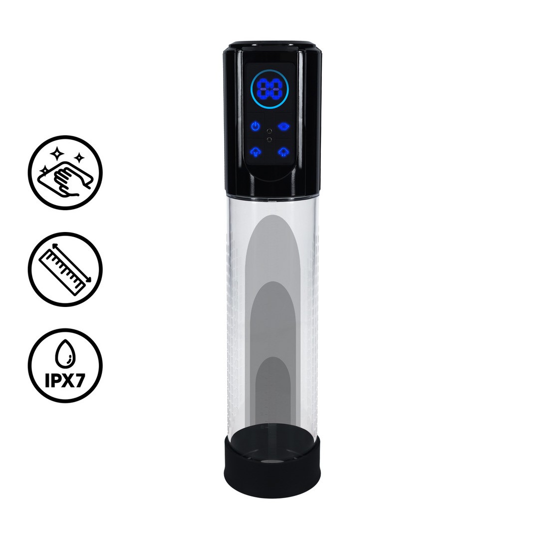 La pompe Megalift offre de nombreuses possibilités d'agrandissement du pénis. La gaine d'insertion est en silicone souple, garantissant une expérience confortable. D'une simple pression sur un bouton, la pompe extrêmement puissante crée un vide intense, procurant des érections rapides et puissantes.