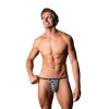 MALE POWER AJUSTABLE THONG WITH BLACK COCKRING MULTICOLOR ANIMAL