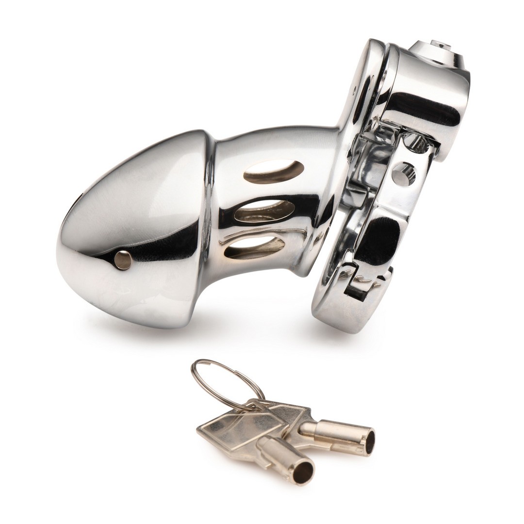 Perfectionnez votre jeu de chasteté avec notre dispositif métallique de haute qualité. Fabriqué en métal doux et sans danger pour la douche, il garantit un confort supérieur. La bague de base réglable permet un ajustement personnalisé entre 41 mm et 50 mm de diamètre. Chaque ensemble comprend 2 clés pour plus de tranquillité d'esprit, avec la technologie push-lock fiable. L'embout cum-thru permet d'uriner facilement, ce qui le rend idéal pour une utilisation prolongée. Ajoutez une touche de contrôle et d'intimité à votre relation avec ce dispositif conçu pour les jeux de pouvoir.