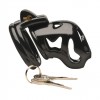 Cage de chasteté en plastique résistant, idéale pour les débutants, avec quatre anneaux réglables et une conception ventilée pour un confort prolongé.