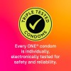 Die transparenten Kondome mit Flavor Waves von ONE sind in sechs köstlichen Geschmacksrichtungen für mehr Spaß beim Oralsex erhältlich: Schokolade und Erdbeere, Island Punch, frische Minze, Kaugummi, Schokolade mit Minze und Bananensplit. Keine der Geschmacksrichtungen enthält Zucker oder Süßstoffe. Alle enthaltenen Kondome sind für Oralsex geeignet.