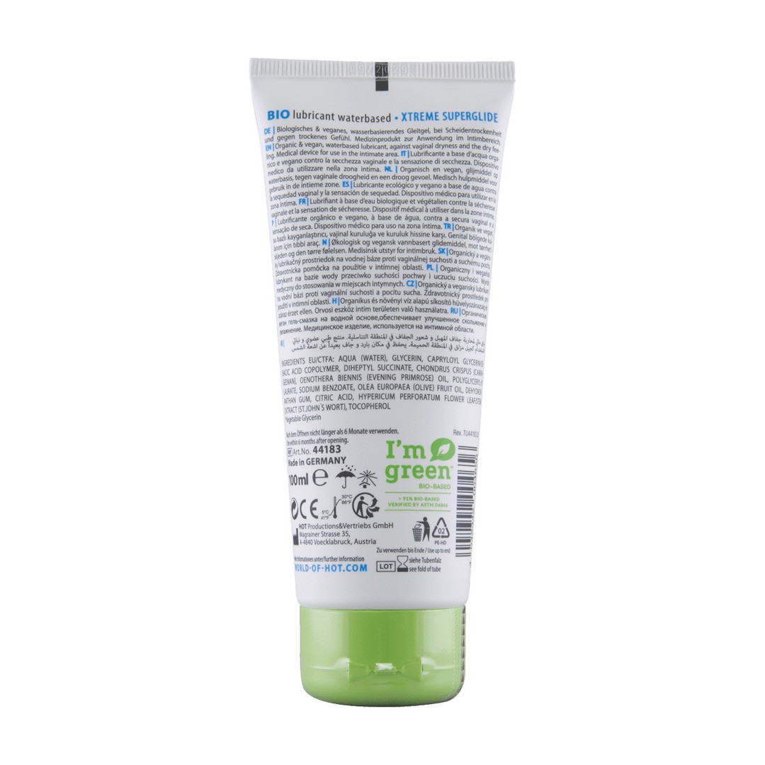 HOT™ BIO Superglide Extreme is a soft water-based lubricant that stays smooth for a very long time. It is safe to use in combination with condoms and sex toys. HOT™ BIO Superglide Extreme is a completely natural lubricant in an environmentally friendly tube.