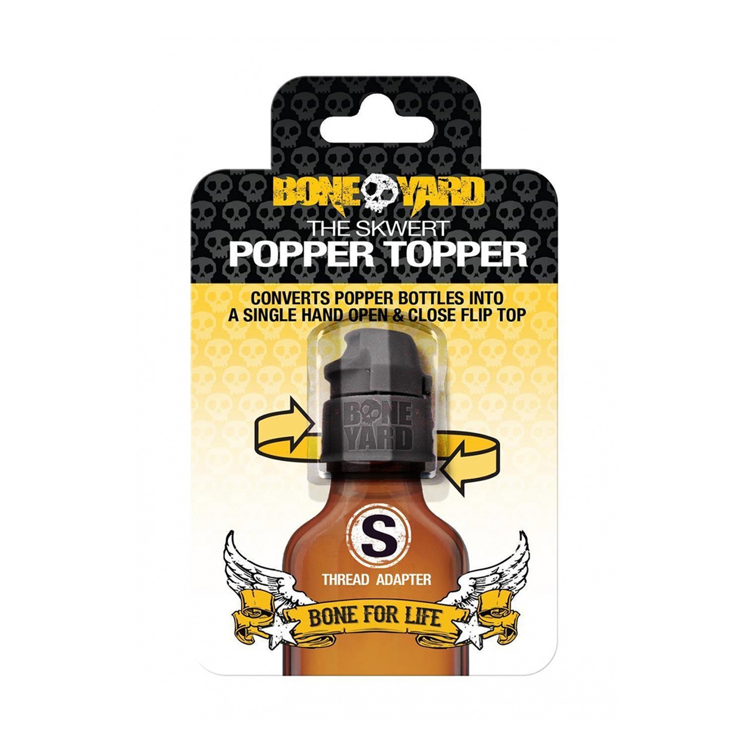 The Patent Pending Popper/Aroma Topper turns your popper bottle into a 1-handed, flip top. No more slippery, 2 handed battle with the bottle! In the past getting the bottle open takes 2 hands, keeping track of the removable cap is always a challenge and then actually screwing the cap back on, all while you have more important things to focus on! With the Toppers just use your thumb to click it open and closed for a tight seal. Helps prevent spilling, staining and waste. They fit most traditional popper bottles.