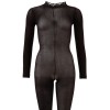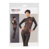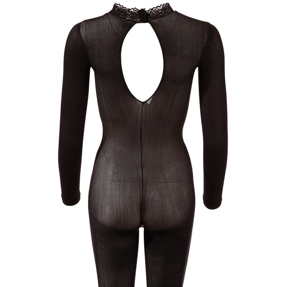 Long-sleeved bodystocking in semi-transparent powernet fabric, soft and light, which elegantly envelops the body. No crotch, with a delicate lace collar and integrated feet for a sensual and sophisticated look.