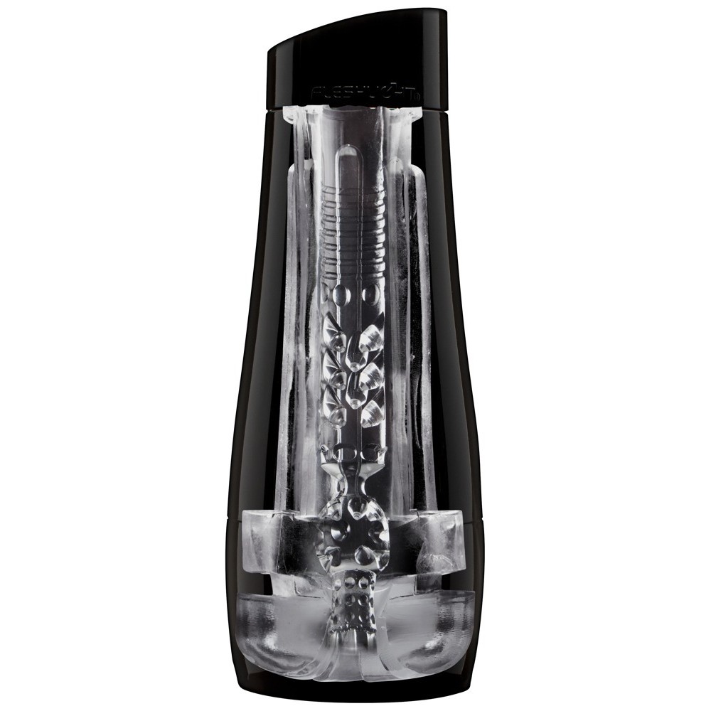 Transparent masturbator with dotted and ribbed inner sleeve and tight anal opening, presented in a black box. Total length and insertion length of 20 cm. Flexible diameter for greater adaptation. Made of TPE.