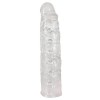 Penis sleeve with pimple and vein texture, extra long (can be cut for a perfect fit). Includes solid glans for penis elongation. Transparent.