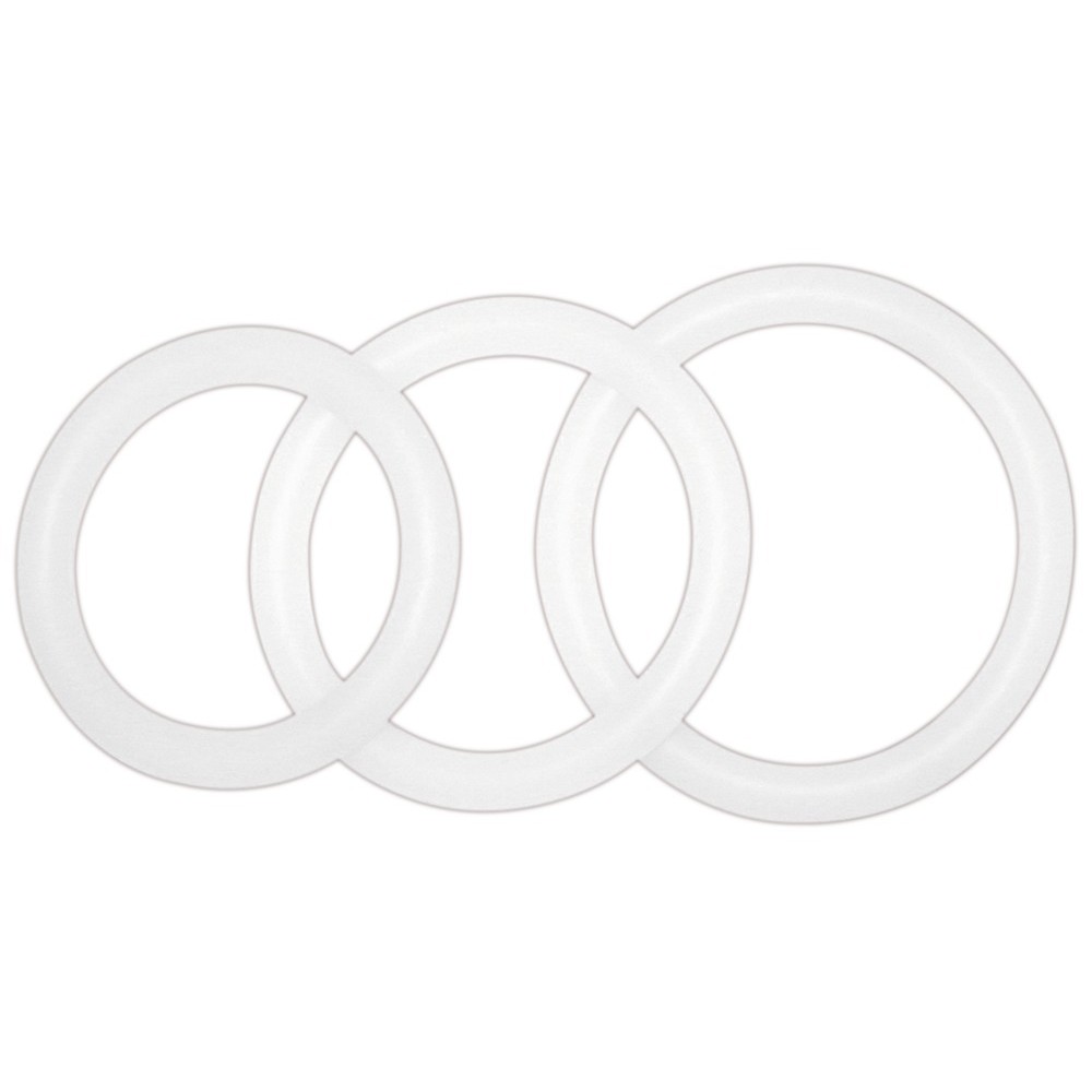 Set of three transparent cock rings that provide effective erection support by restricting blood flow. With diameters of 3.5 cm, 4 cm and 4.5 cm (flexible), they comfortably adapt to different sizes.