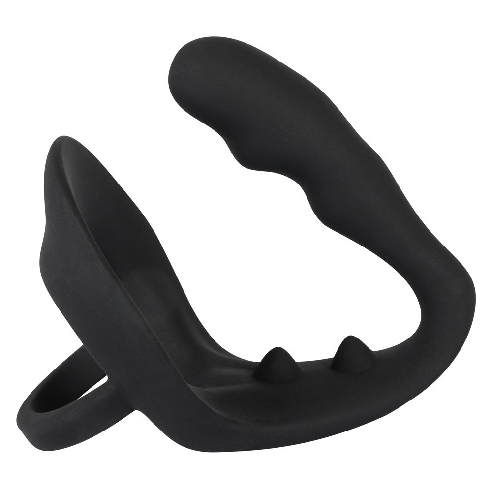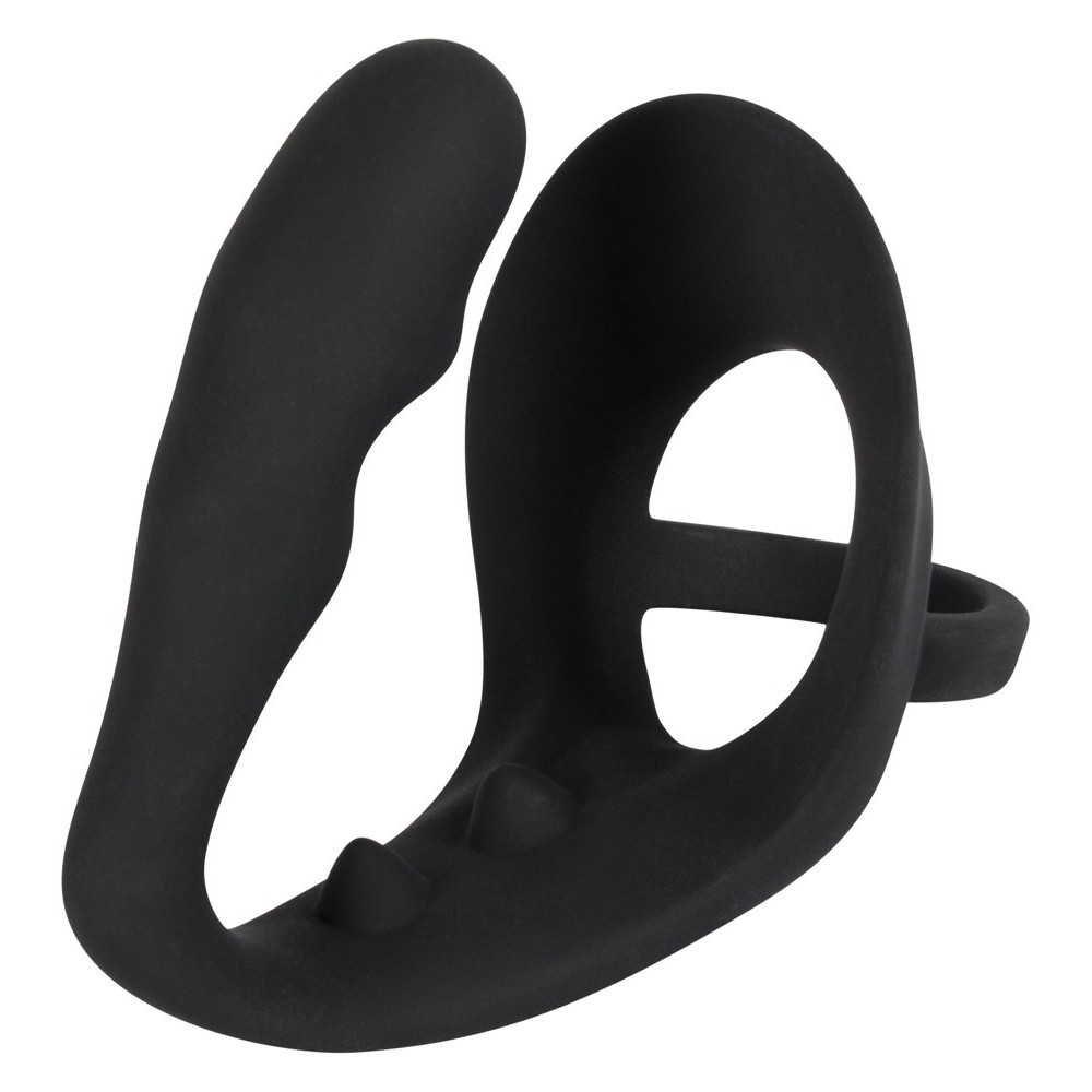 This black cock ring combines an additional anal plug with a stimulating perineal bridge, offering pleasure in multiple spots. Pure ecstasy guaranteed!