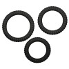 Three penis rings with different grooves and diameters (2.6 cm, 3.0 cm and 3.5 cm). Also suitable for the testicles. Can be used individually or all at once.