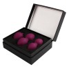 Set of love balls consisting of 1 single ball and 2 double balls, with three levels of increasing weight for progressive pelvic floor training. As the balls become smaller, the muscles must work harder to keep them in place. The rotation of the weights inside causes oscillations that stimulate strengthening muscle contractions. Ideal after pregnancy and as a prevention against incontinence. Skin-friendly Soft Touch texture and equipped with an elastic retraction strap with ring.