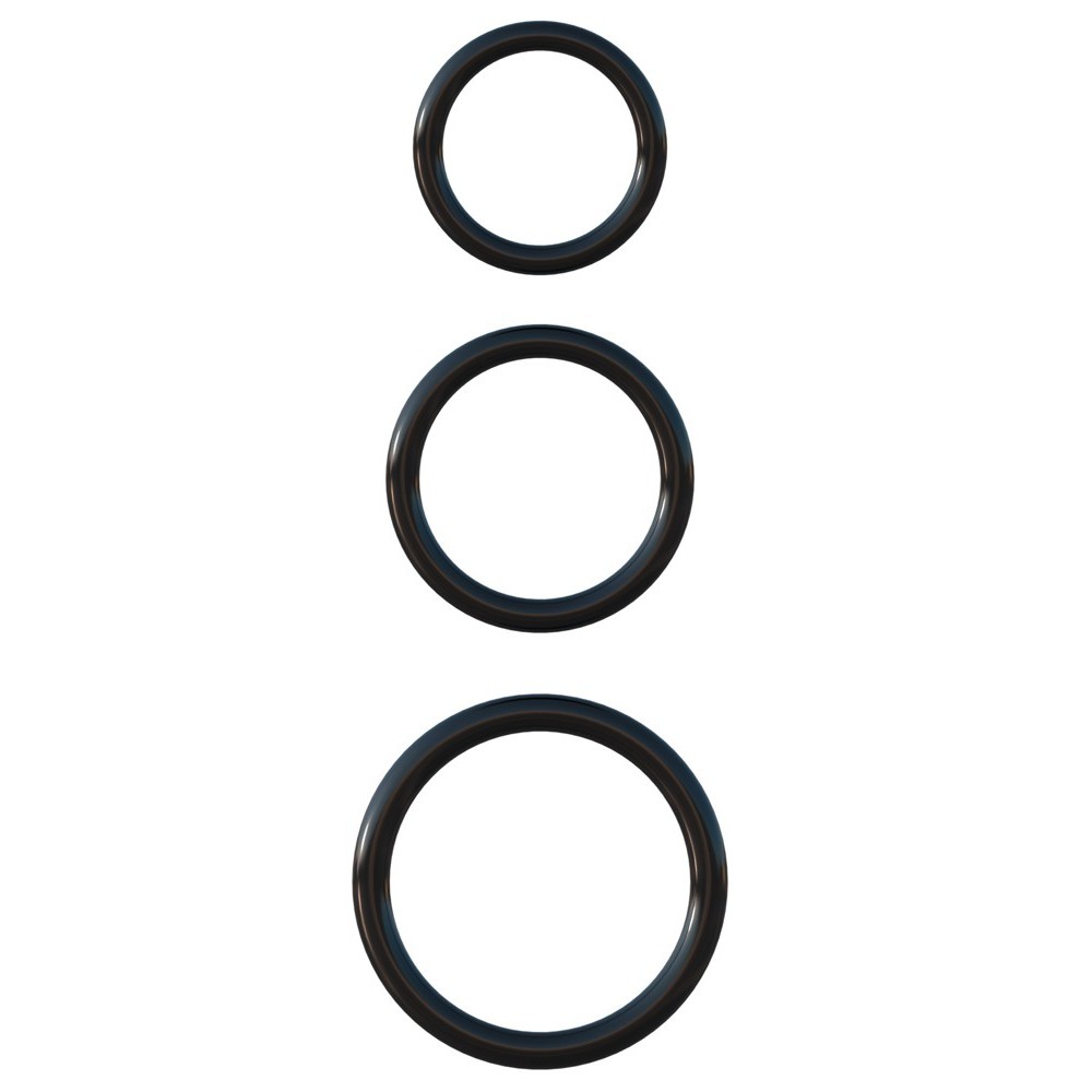 Set of three penis/testicle rings in different sizes, made of silicone for maximum comfort and total safety. Extremely flexible, they slide on easily to provide firm, intense and long-lasting erections.