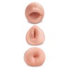 This set includes three masturbators with different pleasure openings. You can freely choose between a realistic replica of a mouth, vagina or anus, depending on what you fancy at any given moment. The three masturbators are smooth and extremely soft to the touch, offering a pleasure tunnel open at both ends.