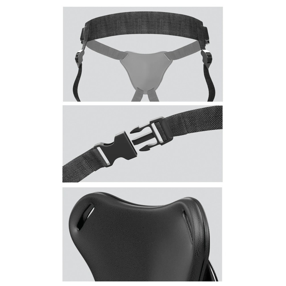 The attachment plate distributes pressure evenly across the pelvic area, preventing any discomfort. The entire system adapts perfectly to your anatomy and follows your body's movements. The wide, sturdy straps are adjustable with plastic sliders, ensuring a snug and comfortable fit.