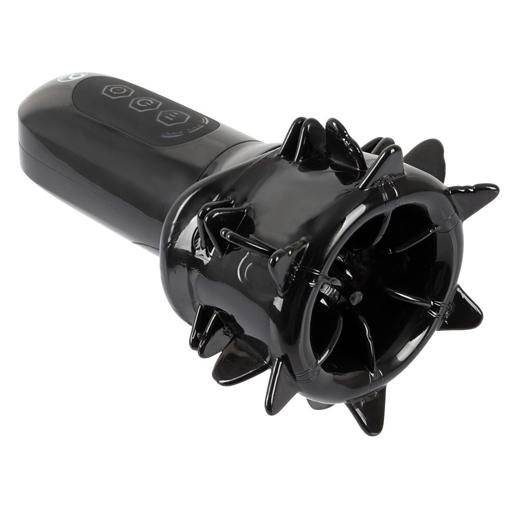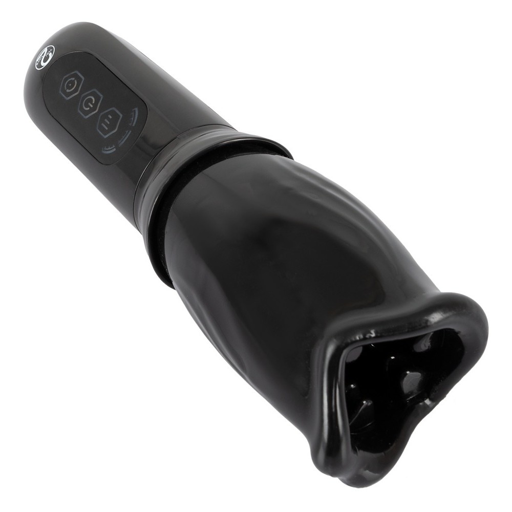 The rechargeable Stroker rotating masturbator has a soft, rotating sleeve shaped like a mouth. Inside, it features numerous soft, stimulating tongues that provide an intense and enveloping massage to the penis.