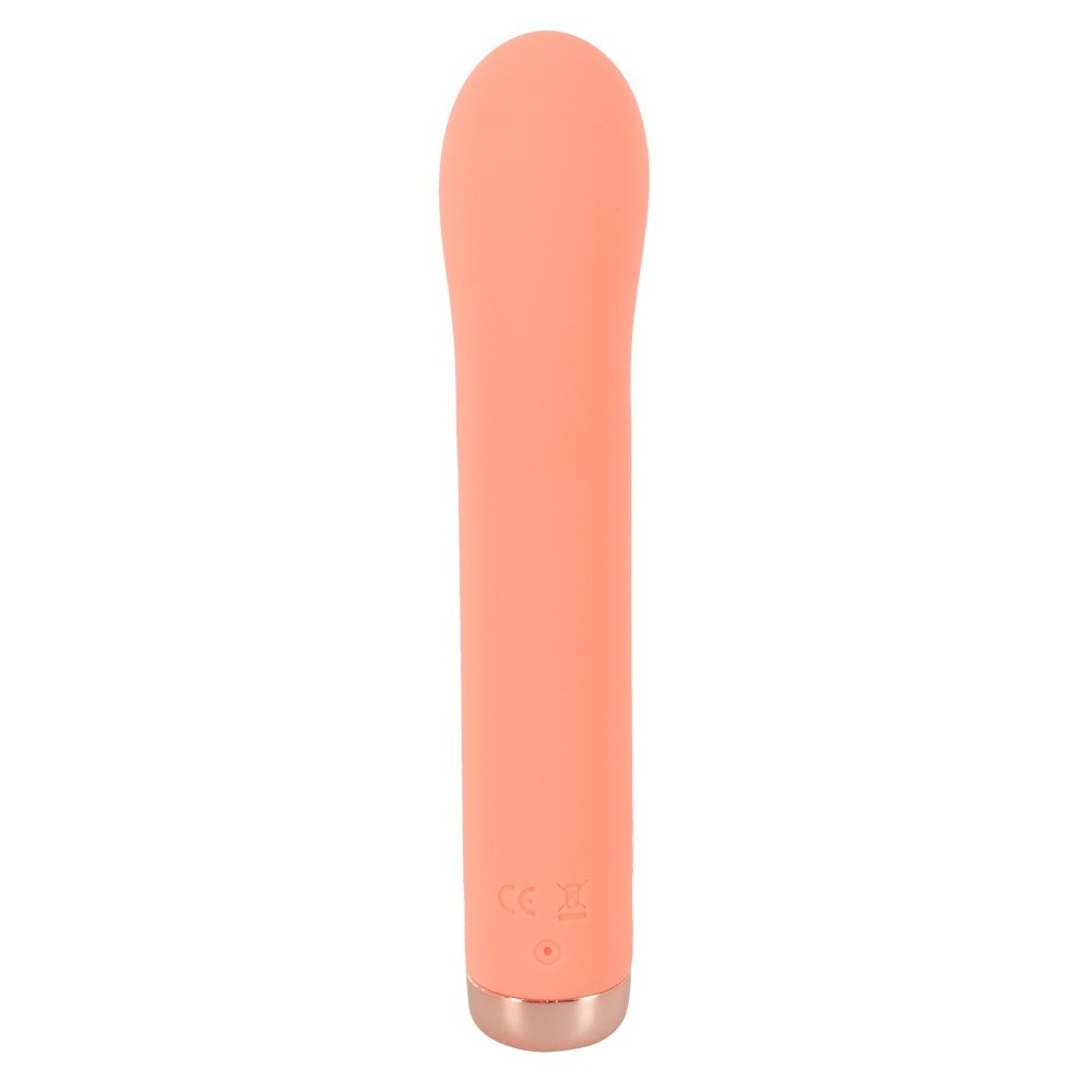 Elegant Mini G-Spot Vibrator in pastel colours from Peachy!, with a perfectly curved design and rounded head for direct stimulation of the G-spot or P-spot. The 10 vibration modes provide a wide variety of sensations during vaginal and anal stimulation and can be easily adjusted up or down with a simple touch of a button.